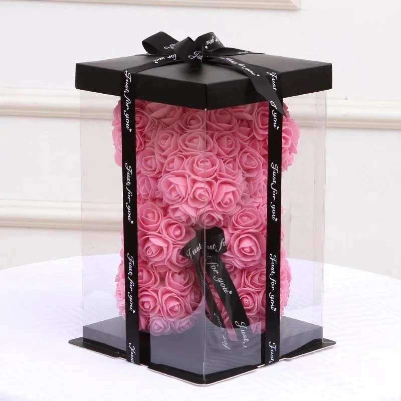20/28 см искусственные розы пены медведь прозрачная коробка в форме цветка на День святого Валентина подарки торт упаковочная коробка для кемпинга одежда для свадьбы, дня рождения Декор