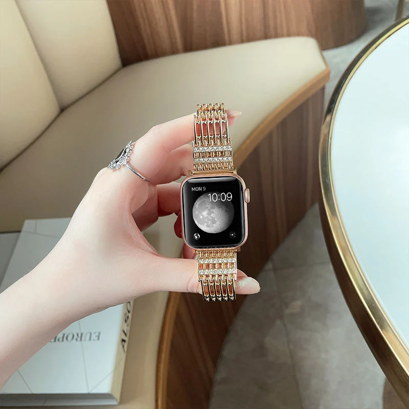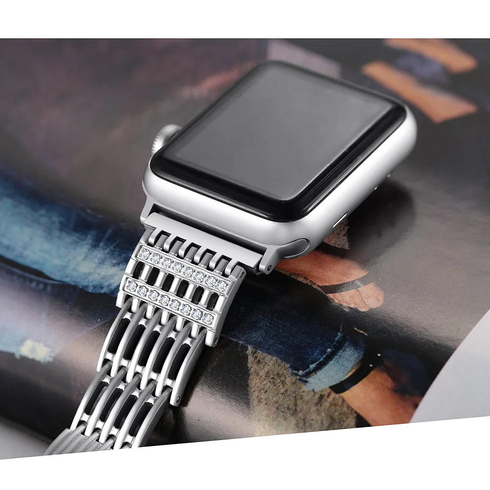 Женская металлическая оплетка для Apple Watch Series 7 41 мм 45 мм 6 5 4 3 Бриллиантовая нержавеющая сталь для iWatch SE 44 40 браслет 42 мм 38 м