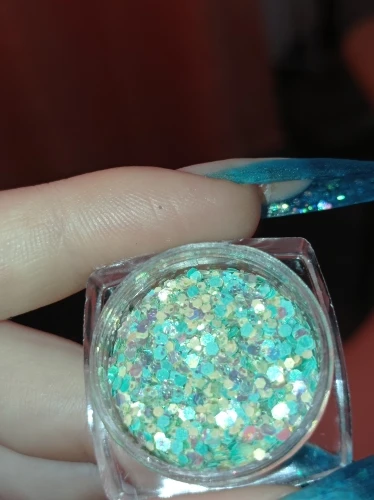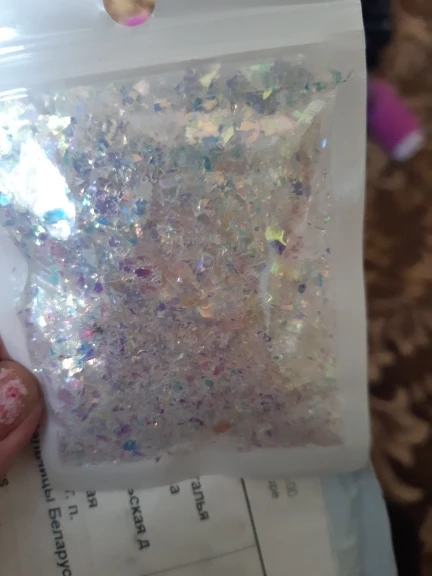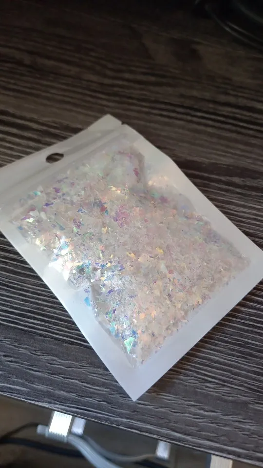 Штука интересная, выглядит красиво, но очень грубый полиэтилен, ведёт себя капризно: плохо прилипает, торчит, много пришлось спиливать. Пришлось нарезать мелко и только после этого укладывать на ноготь.