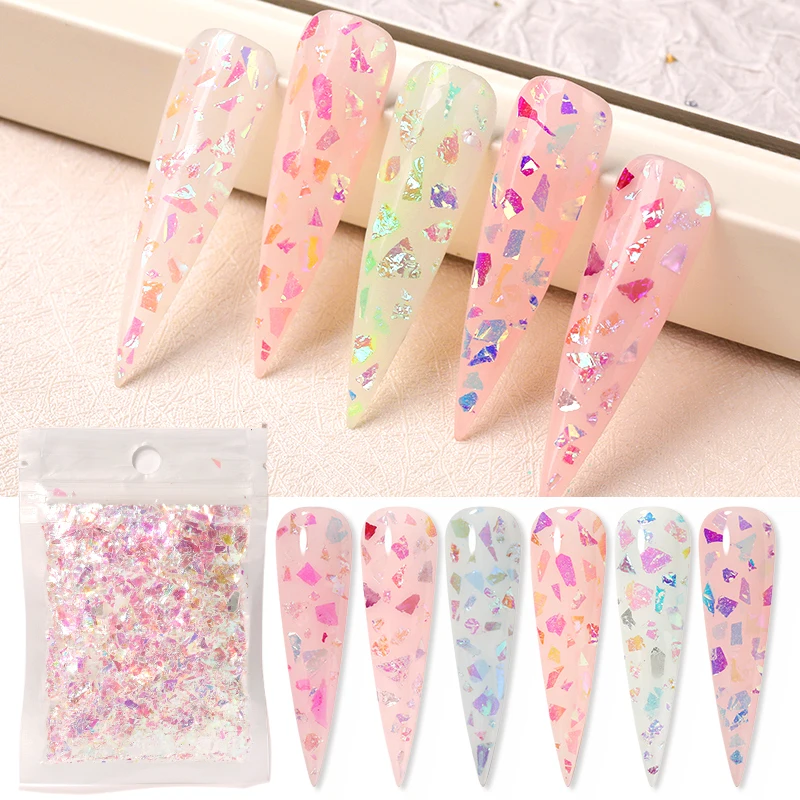 Блестящие хлопья для ногтей, Блестящие Блестки, яркая стеклянная бумага, сердце, блестки для ногтей, сделай сам, Гель-лак для маникюра, украшения для ногтевого дизайна