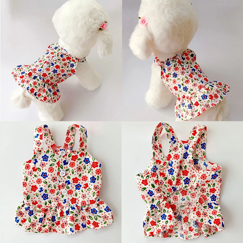 Цветочное на лямках с изображением собаки; Хлопковая ткань; Удобная ткань; Принт с цветочным узором; Симпатичная и милая одежда; Ребенок-питомец более милый и милый после ношения.