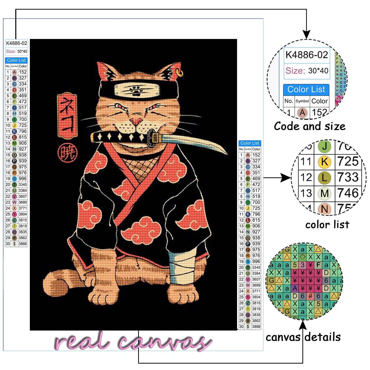 Набор для алмазной вышивки кошка самурая