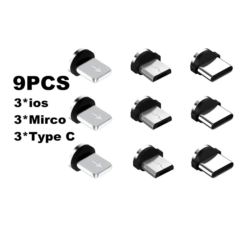 9 шт. магнитные наконечники 3 в 1 вилки для iPhone Samsung мобильны...