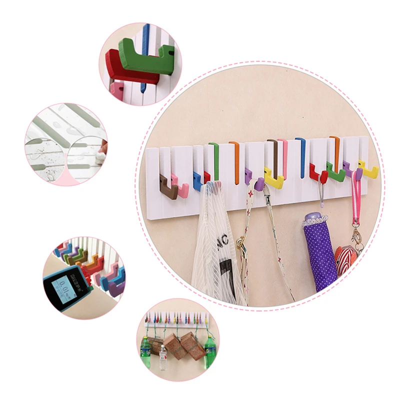 Вешалка для ключей, крючок для хранения, Деревянное пианино, цветное настенное украшение, стойка для пальто и шляпы, самовсасывающая стойка, крючок