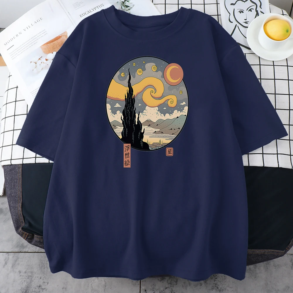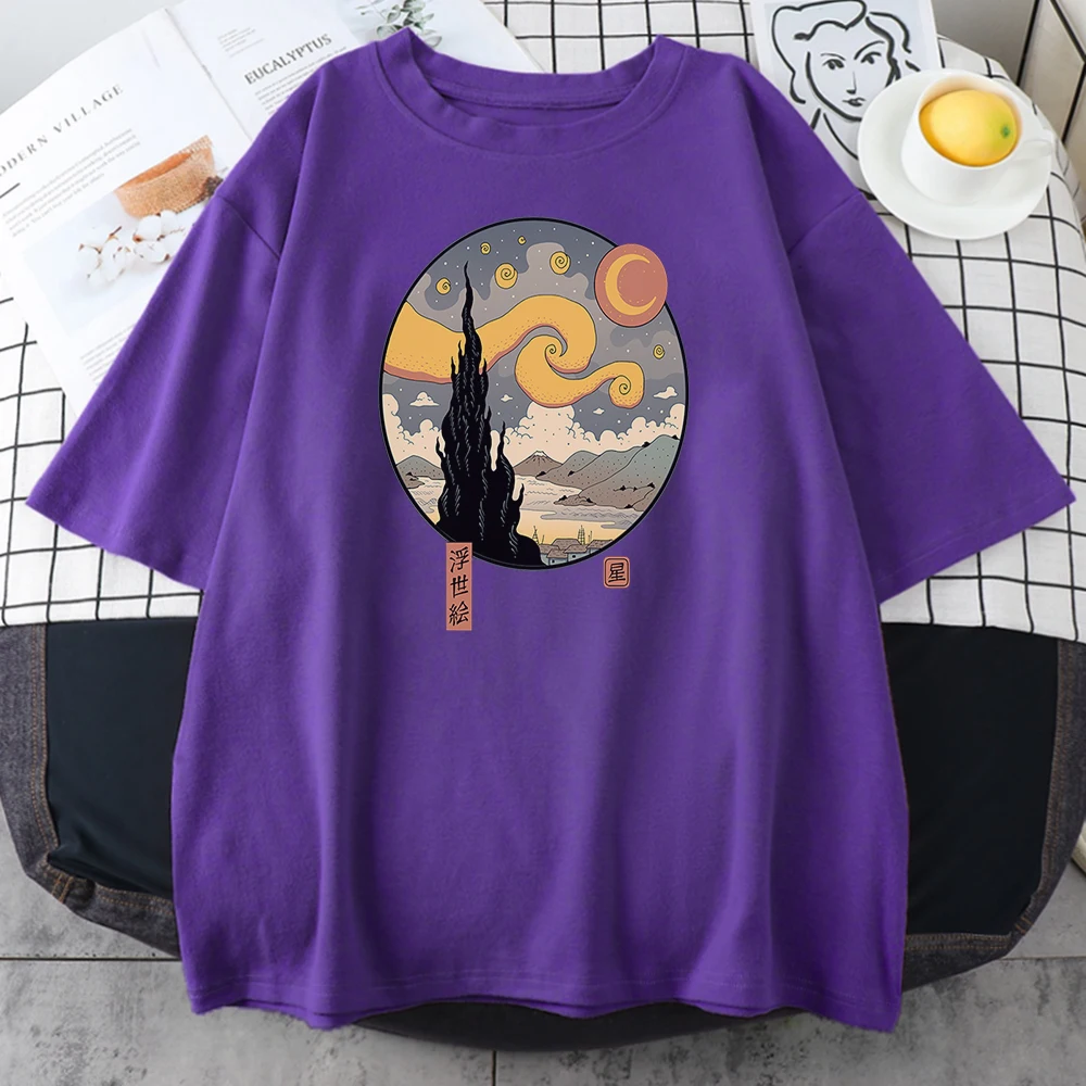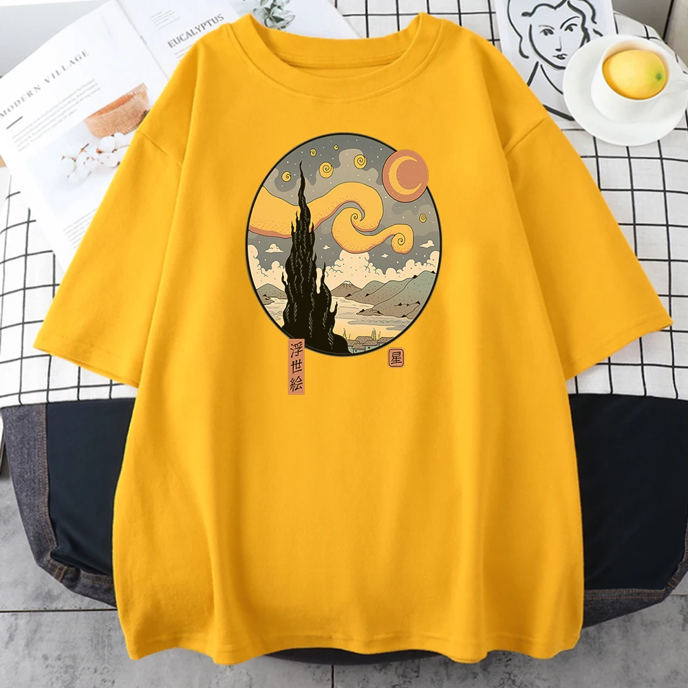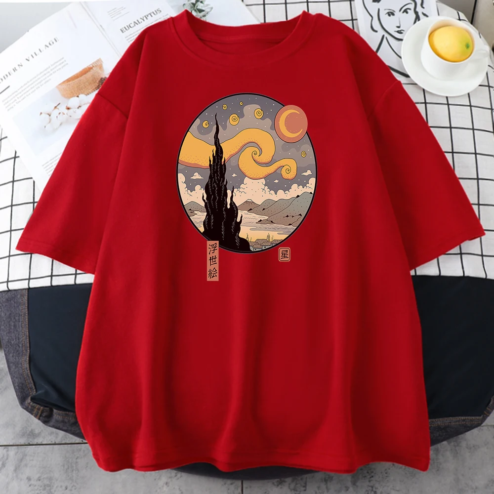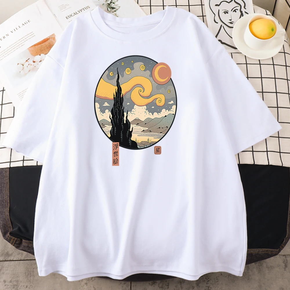 Женская футболка с принтом «Звездная ночь» Ukiyo-e, весенне-летняя модная одежда, уличные стильные футболки, свободные женские футболки, уличная одежда
