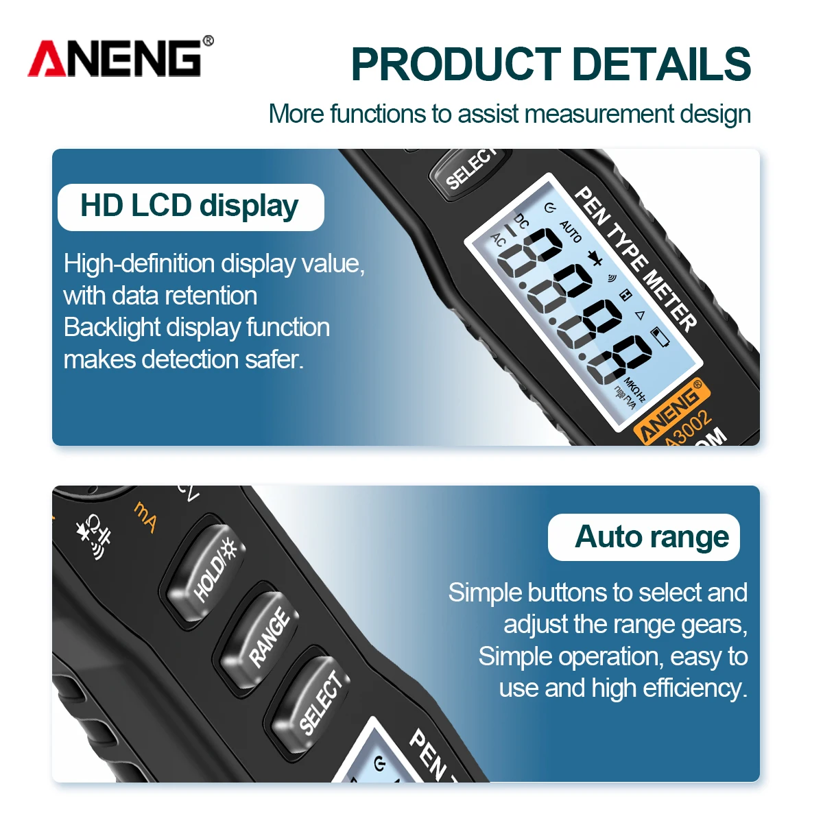 Цифровой мультиметр ANENG A3002, 4000 отсчетов, не Стандартное напряжение переменногопостоянного токадиодинструмент для проверки целостности цепи, фонарик