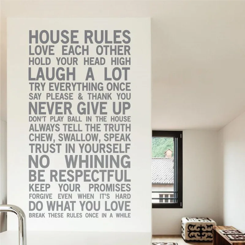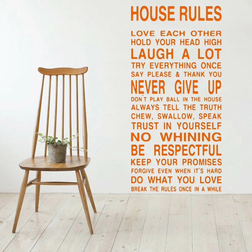 Настенные Стикеры, искусство, обеденный дом, Семейные правила, цитата, аксессуары для гостиной кровати, настенные фрески, наклейки для дома, украшения для детей, спальня