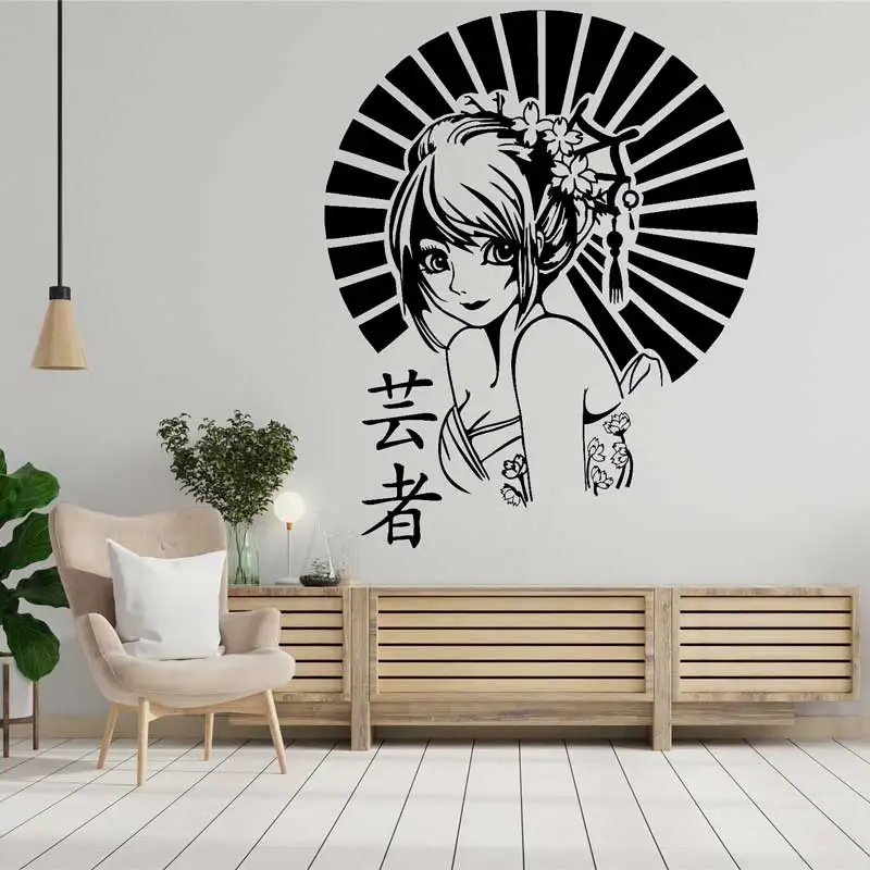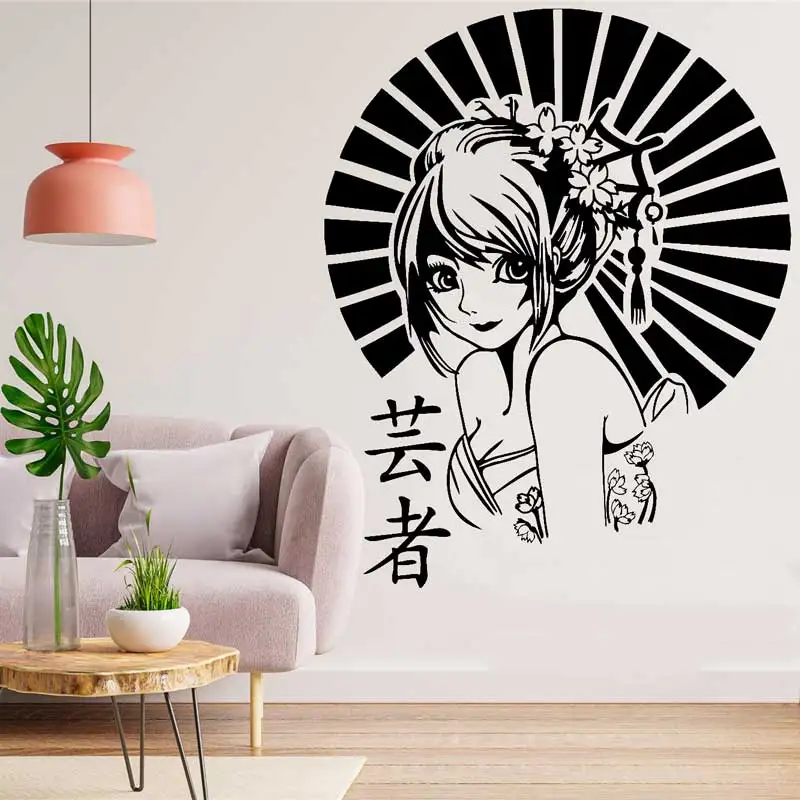 Азиатские восточные японские Аниме Девушки гейши Наклейка на стену манга японский ресторан спа клуб домашний декор виниловая наклейка на стену подарок 7