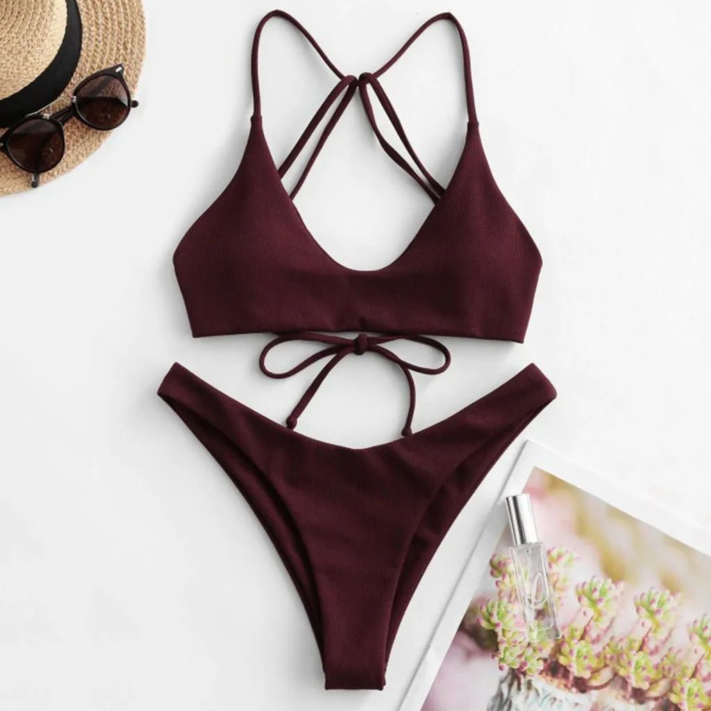 Женский Купальник, новинка 2022, пикантный комплект бикини на шнуровке, купальный костюм из двух предметов, Купальник, Женский Купальник