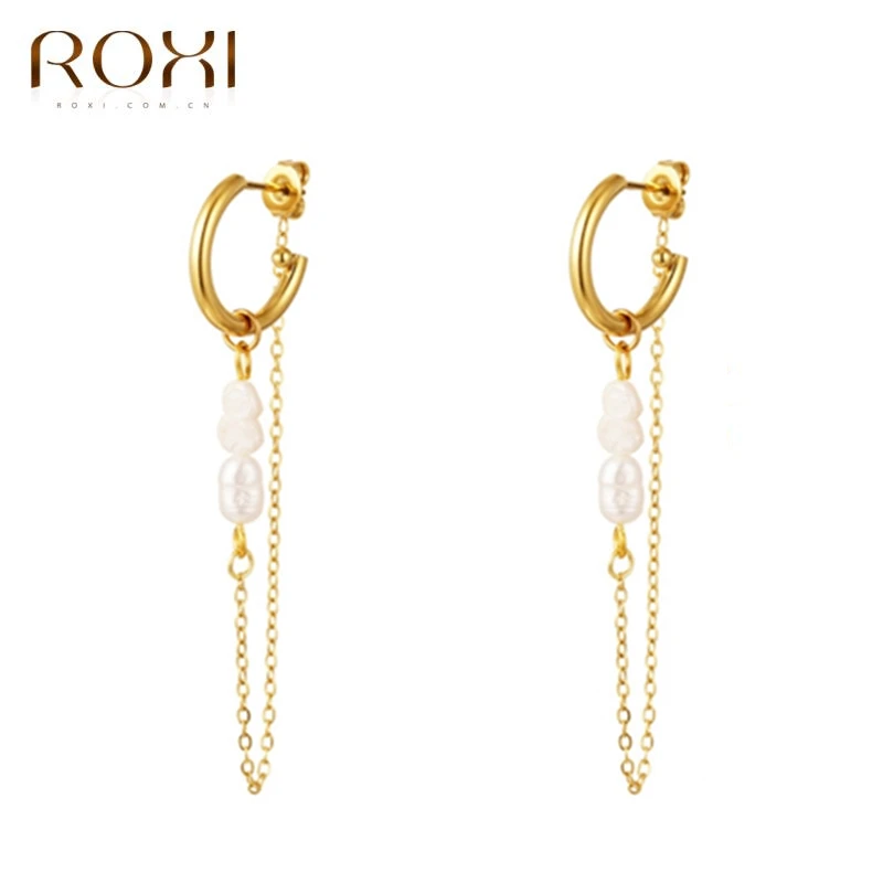 Женские серьги-гвоздики с длинной цепочкой ROXI, серьги в стиле барокко из стерлингового серебра 925 пробы, ювелирные изделия
