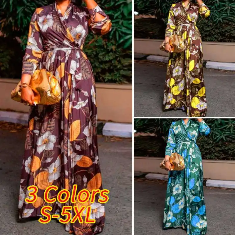 Женское платье с цветочным принтом, винтажное длинное платье макси ...
