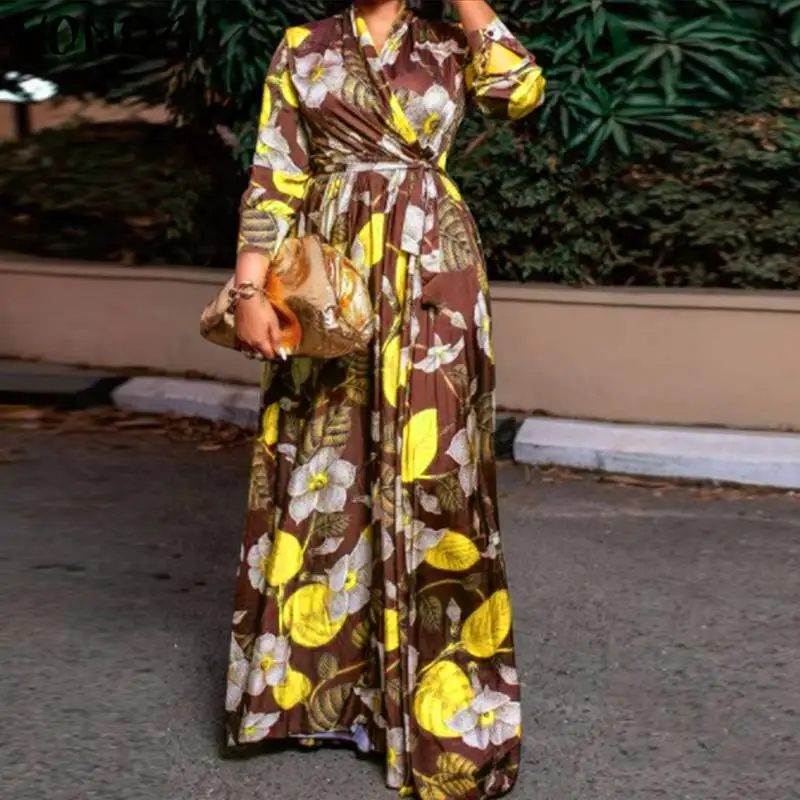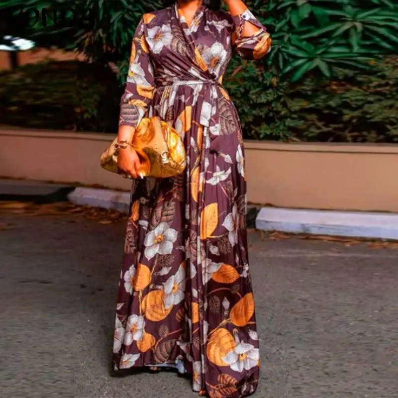 VONDA Brand Spring Sexy V Neck Maxi Dress