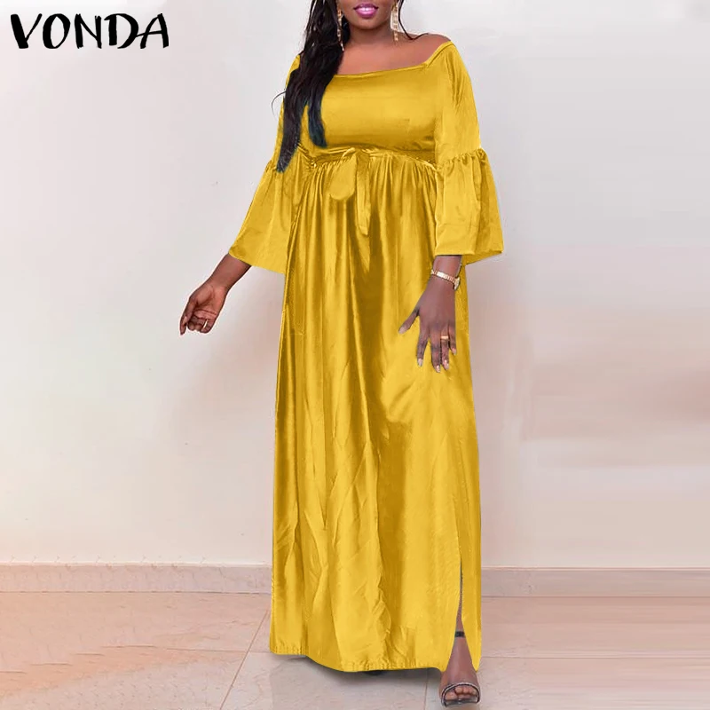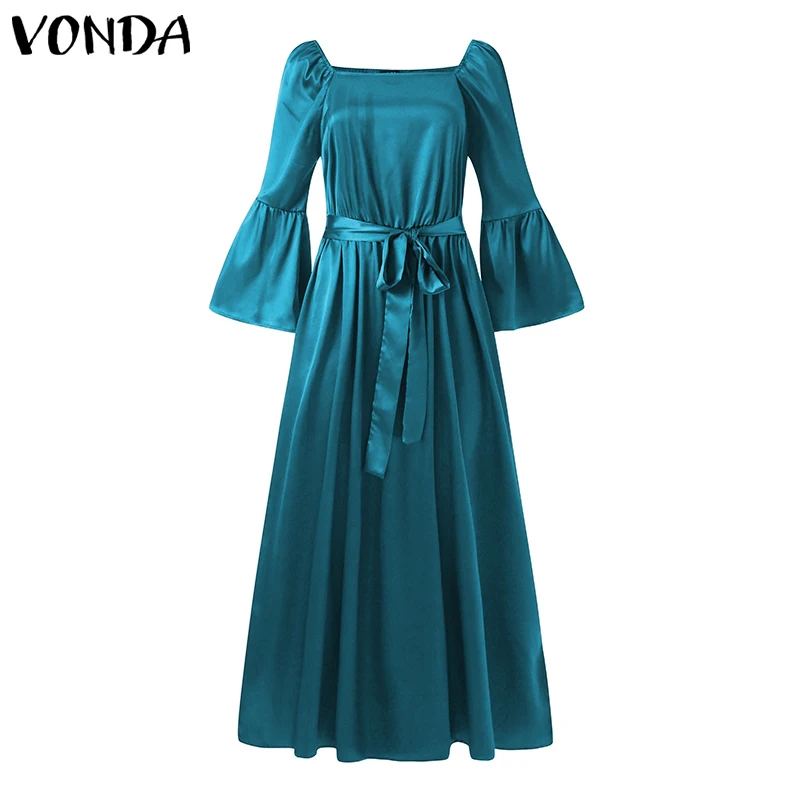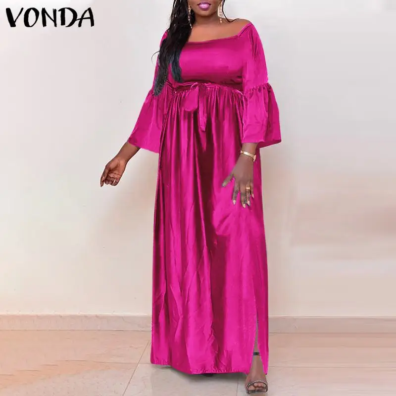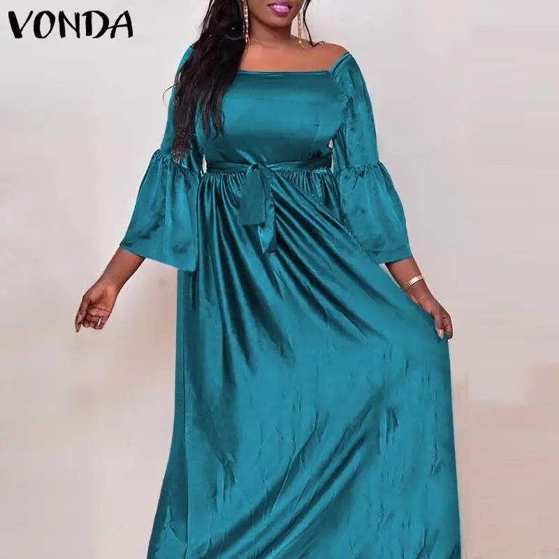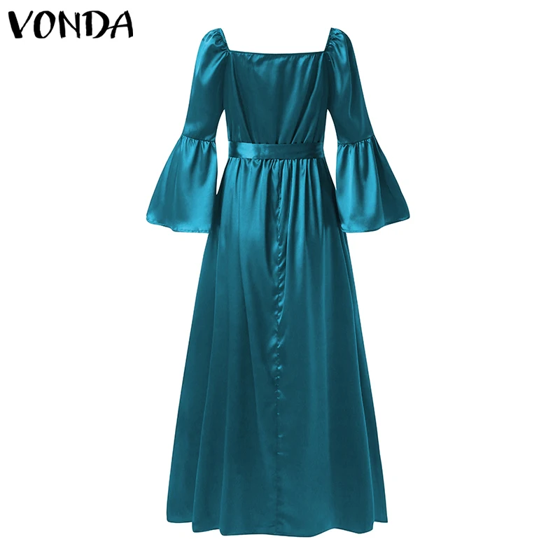 2021 VONDA летнее сатиновое вечернее длинное платье с рукавом до ло...