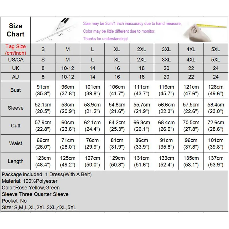 Посылка включает в себя: 1 платье (с поясом)Материал: 100% полиэстерЦвет: розовый, желтый, зеленыйРукав: длинный рукавКарман: нетРисунок: однотонныйДлина: до щиколоткиОсобенности: рукав пагода, плиссировкаСтиль: Отдых, праздник, Европа, повседневные, модныеСезон: весна, осеньПовод: вечерние, праздничные, уличные, рабочие, путешествия, встречи, свадебные, вечерниеВнимание:1. Перед покупкой, пожалуйста, проверьте размеры в таблице размеров!2. Размер может быть неточным на 2 см/1 дюйм из-за ручного измерения, цвет может немного отличаться из-за монитора, спасибо за понимание!3. Предложение холодной воды ручная стирка. Это может помочь предметам сохранить свою форму.