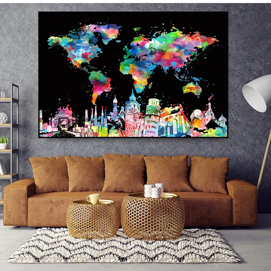 Абстрактный цвет карта мира 5D алмазная живопись своими руками Биг-Бен архитектура популярная Алмазная вышивка наборы для вышивки крестиком рукоделие