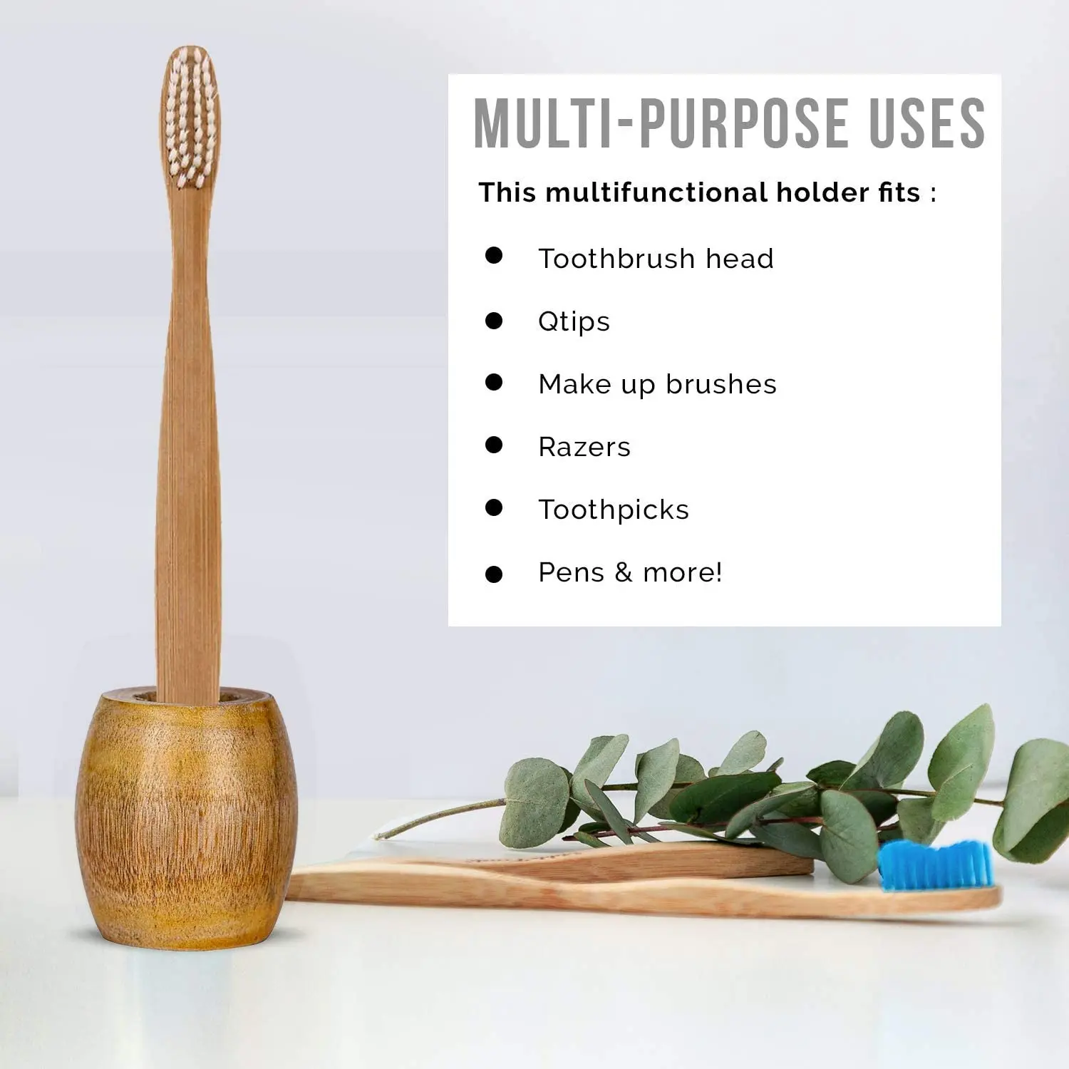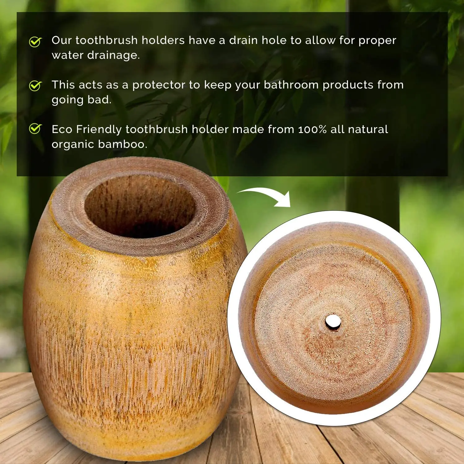 Декоративный органайзер для ванной комнаты: держатель зубной щетки эстетически изготовлен и предназначен для придания стиля столешнице вашей ванной комнаты. Этот чехол для кисти удерживает зубную щетку в вертикальном положении и является идеальным дополнением для любого домашнего хозяйства. Этот держатель имеет идеальный маленький размер, который может поместиться на любой умывальник или раковину. Его можно даже незаметно хранить в шкафу для ванной комнаты. Привнесите стиль к вашим полкам для ванной комнаты, держите его естественно организованным!Изготовлен из прочного бамбука: этот деревянный держатель для зубных щеток изготовлен из 100% органического бамбука, что делает его естественным сильным и долговечным. Он изготовлен с использованием качественного производственного процесса, который обеспечивает длительный срок использования продукта.Эргономичный дизайн: этот держатель чашки для зубной щетки поставляется с сливным отверстием с правильным дренажем воды. Это помогает защитить от нарастания влаги, гарантируя, что ваша зубная щетка прослужит долго от воды или гниения. Держите зубную щетку стоя, позволяя ей высохнуть и оставаться чистой.Портативный органайзер для зубной щетки: наши чехлы для зубных щеток являются естественными, элегантными и хорошо изготовлены с органической деревянной текстурой, покрывающей держатель. Идеально подходит для организации ваших зубных щеток, сохраняя естественную и элегантную ванную комнату. Вы также можете носить эти маленькие держатели во время путешествий, чтобы держать вашу зубную щетку в чистом месте. Вертикальная конструкция этой кисти чехол делает это обеспечивает экономию места для хранения решение во время путешествий.Универсальный деревянный держатель для зубных щеток: наш органайзер для щеток подходит для зубных щеток для взрослых и детей. Помимо семейных зубных щеток, этот многофункциональный держатель идеально подходит для организации кистей для макияжа, бритв, зубочисток, ручек и многого другого! Это создает существенную привычку для детей всегда помещать кисти в чистую область.