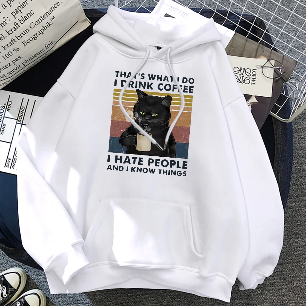 Толстовка мужская Кофейная, свитшот с принтом кофейного кота, свободная теплая толстовка, модная одежда с круглым вырезом, на осень