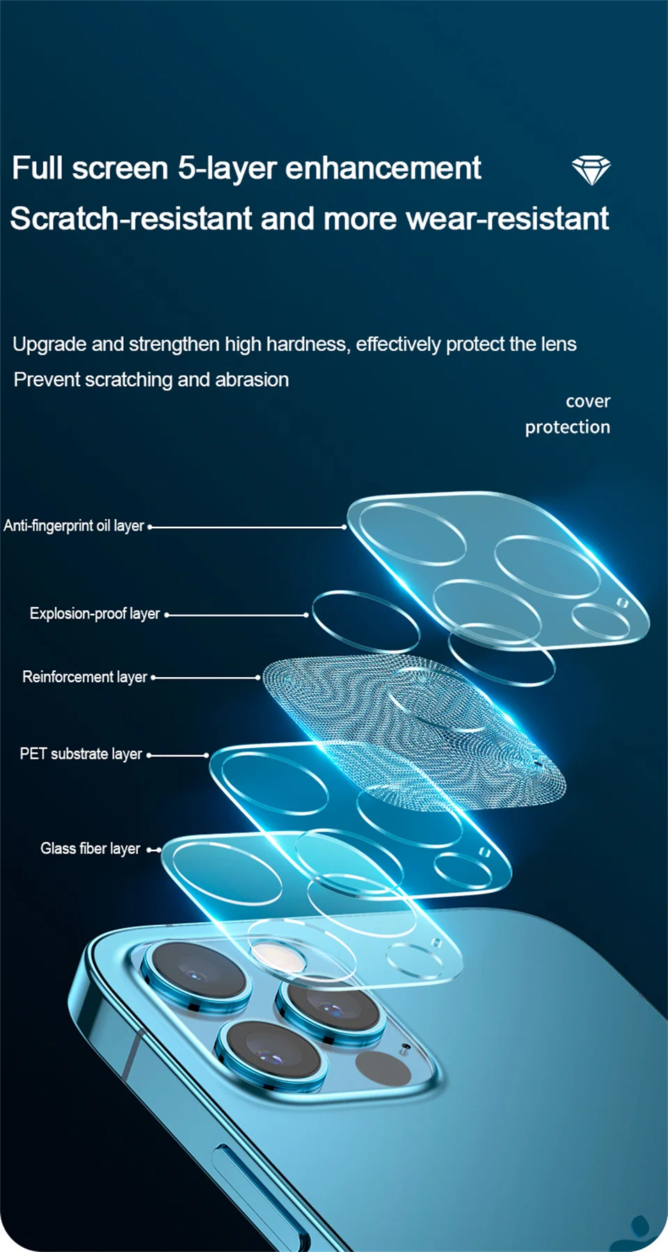 Feature:1.High quality 2.transparent clear Camera lens protector 3.9H Surface Hard Super scratch resistant, wear, explosion-proof, and water-proof, anti oi 4. Effectively protect your cellphone camera from any potential damage 5.Simple and convenient usage, and no bubble