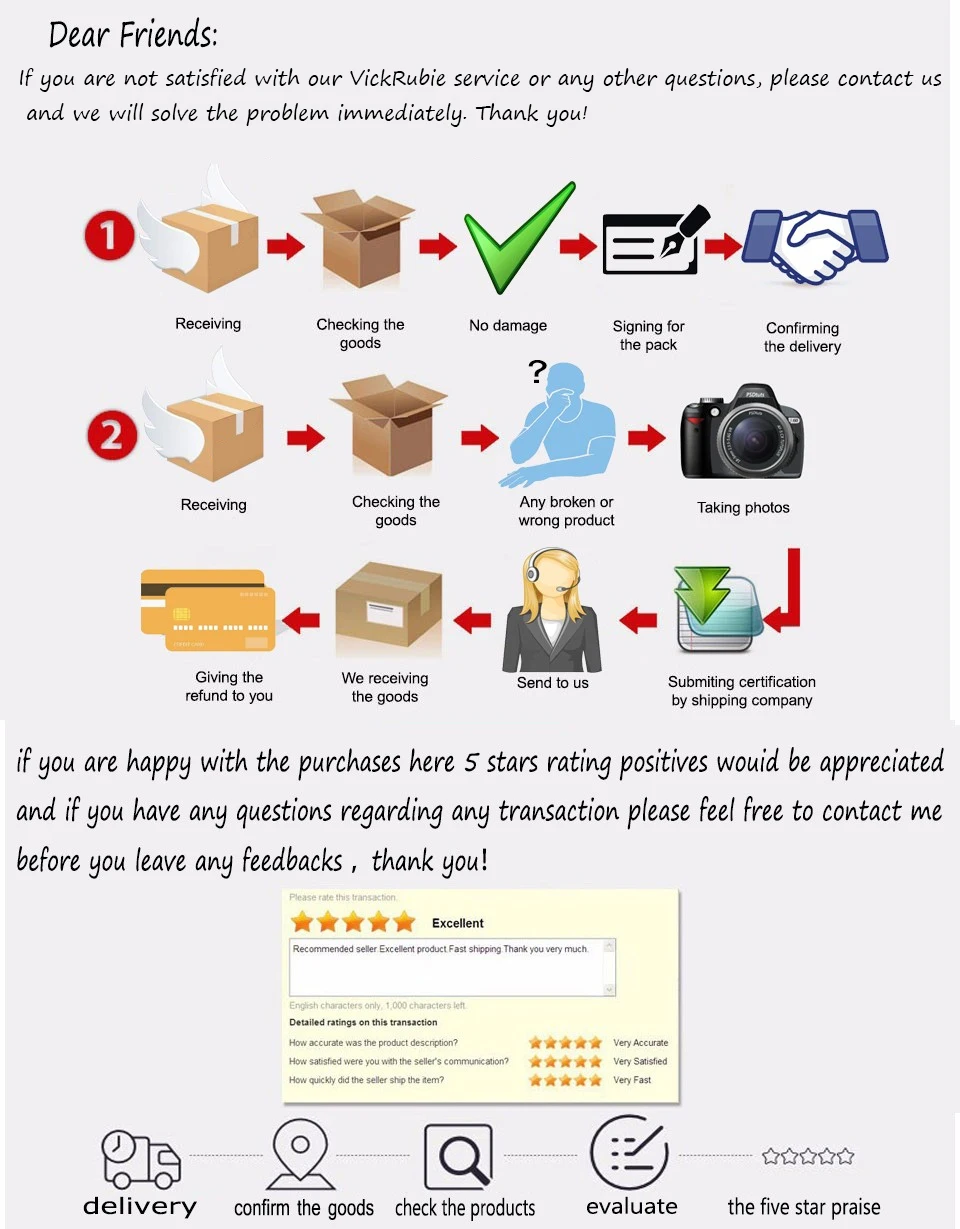 Dear customers, and we have very good after-sales service. If the package is damaged or has not been received, please send a message first, contact us for negotiation, and we will try our best to provide a satisfactory solution.