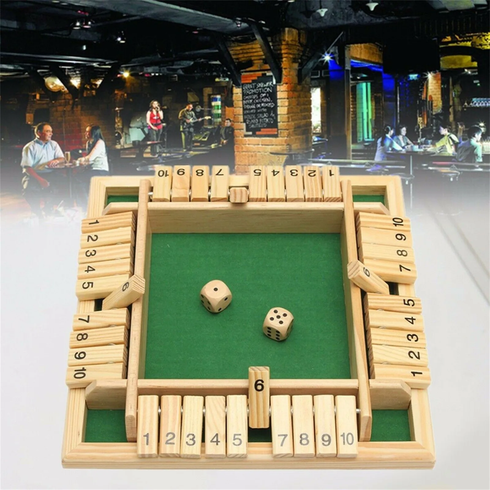 Игра Shut The Box для 1-4 игроков, Деревянная Классическая 4-сторон...