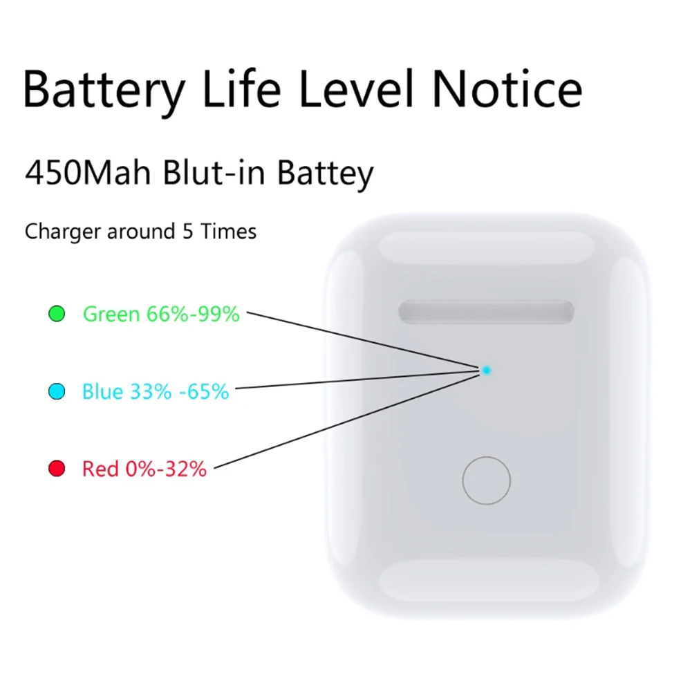 Сменный беспроводной зарядный бокс со светодиодным индикатором для наушников Airpods 12, чехол для зарядного устройства 450 мАч