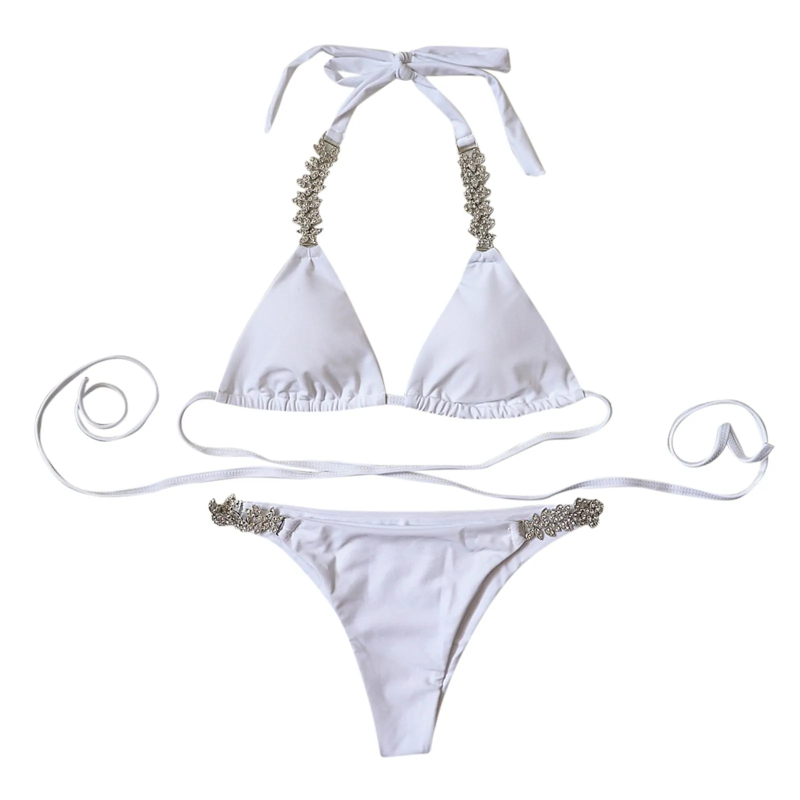 Бриллиантовое бикини, белые стразы, бикини, бразильский купальник, женский купальник на бретелях, Женский Кристальный бикини, набор, купальный костюм с пуш-ап