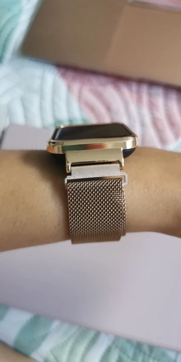 Está muy hermosa, se ve elegante y de buena calidad. Tengo muñecas muy pequeñas, y no es posible reducir más el tamaño de la correa, por lo que me queda un poco grande. El diámetro de mi muñeca es de 14 cm. Lo máximo que se puede ajustar son 16cm (diámetro), para que lo consideres si tienes muñecas pequeñas. Lo recomiendo!