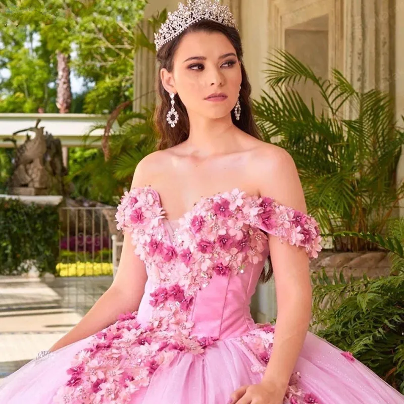 Женское бальное платье с 3D цветами и бусинами, розовое платье для выпускного вечера 15-16 лет, 2022