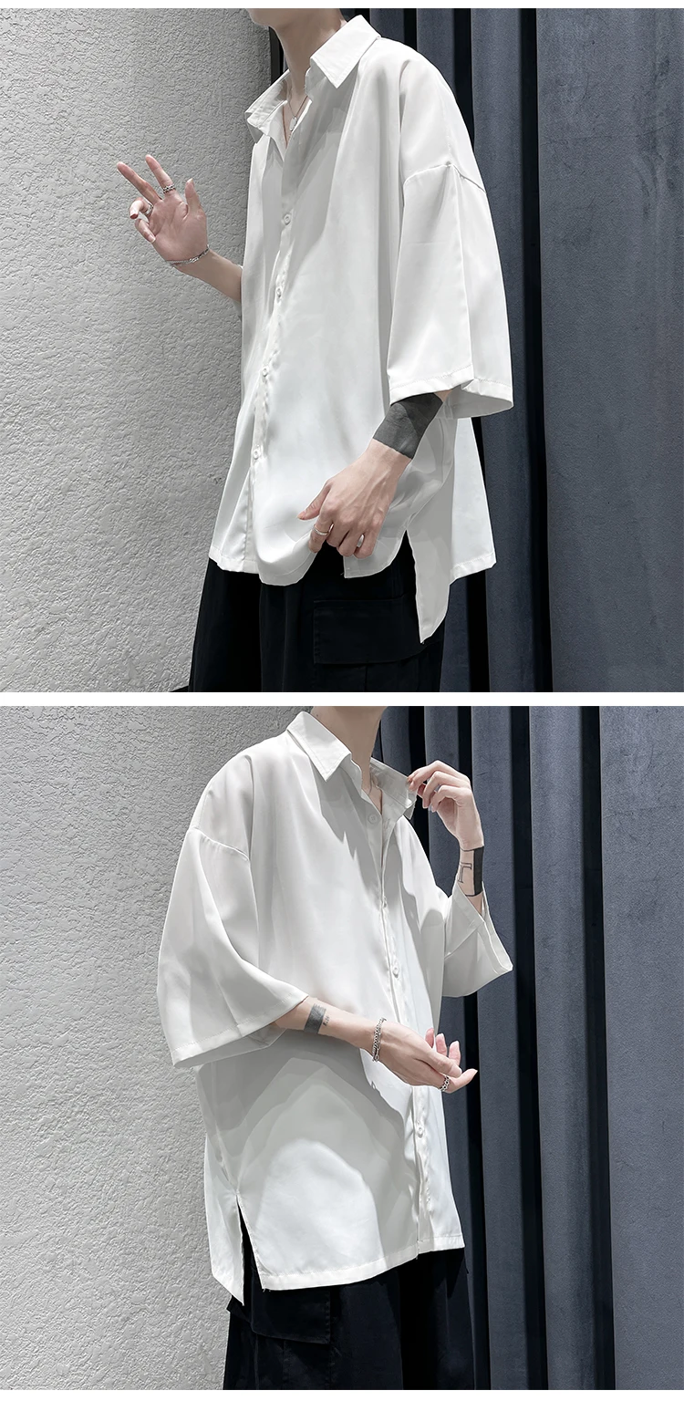 Мужские однотонные рубашки Privathinker, летние повседневные блузки оверсайз, белый модный мужской кардиган, винтажная Корейская одежда