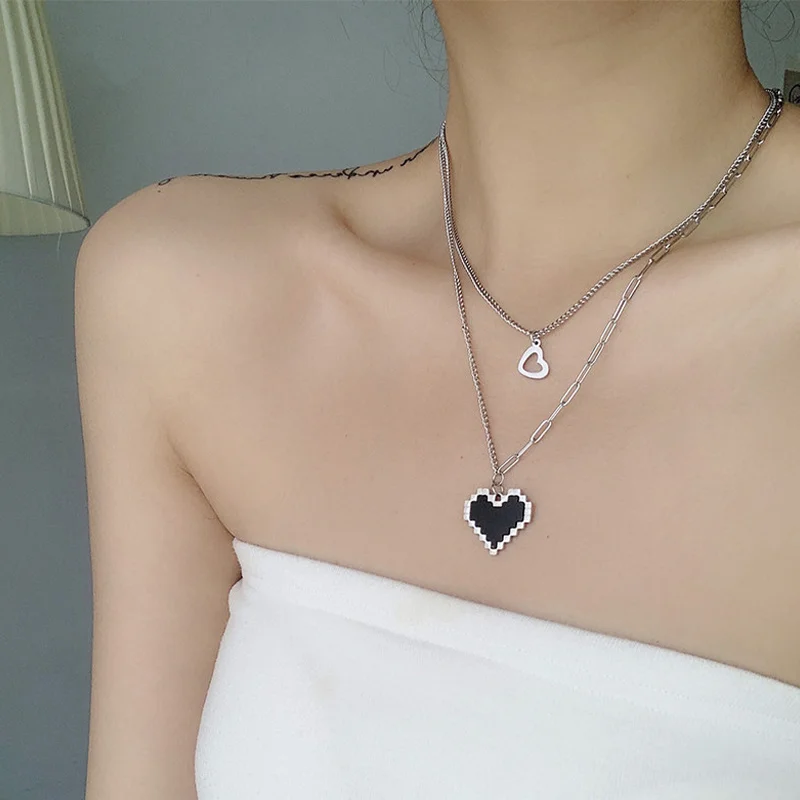 2022 черная мозаика Love Pixel Peach полое сердце Двухслойное ожерелье в стиле панк Харадзюку модное асимметричное женское ювелирное изделие подарок