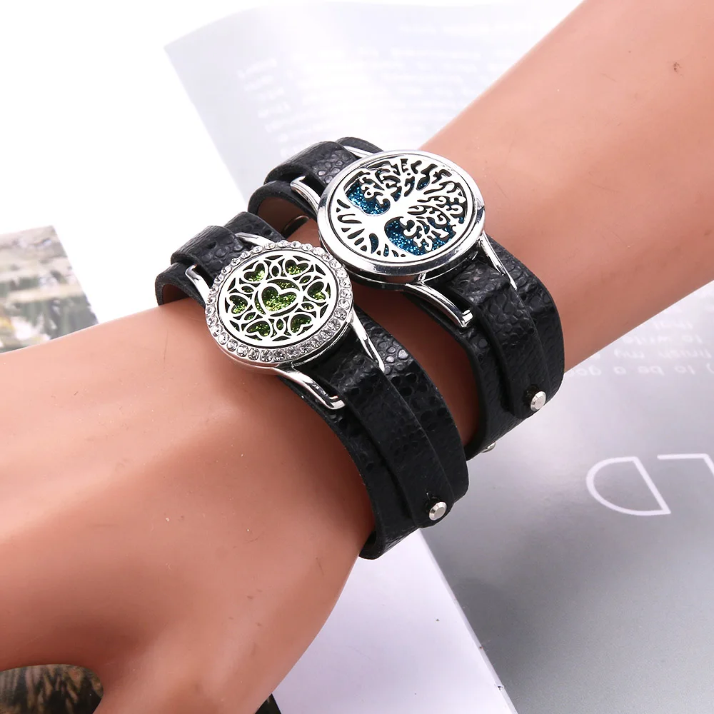 Модные кожаные браслеты Стразы с ароматом, женские браслеты с распылителем эфирного масла Древо жизни, украшения с ароматом, подарки, тренды 2022 года