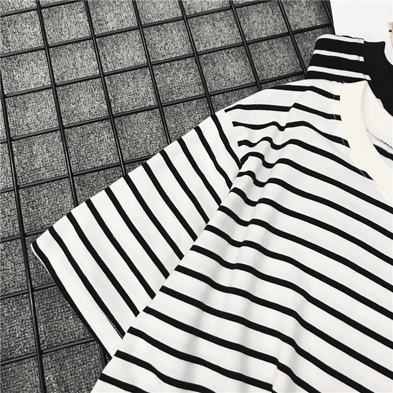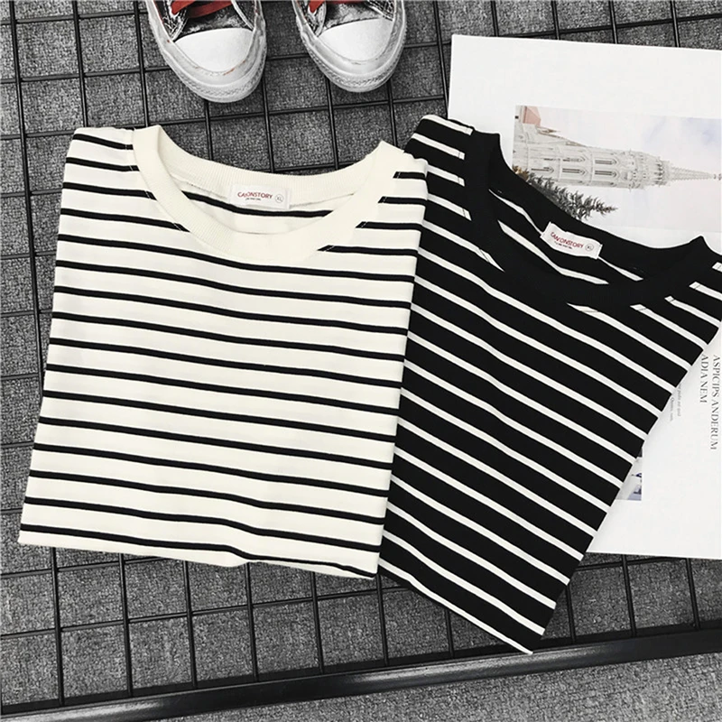 GAOKE Женская водолазка в Корейском стиле Футболка Harajuku укороченный топ с длинными рукавами в полоску Женская футболка летние повседневные топы