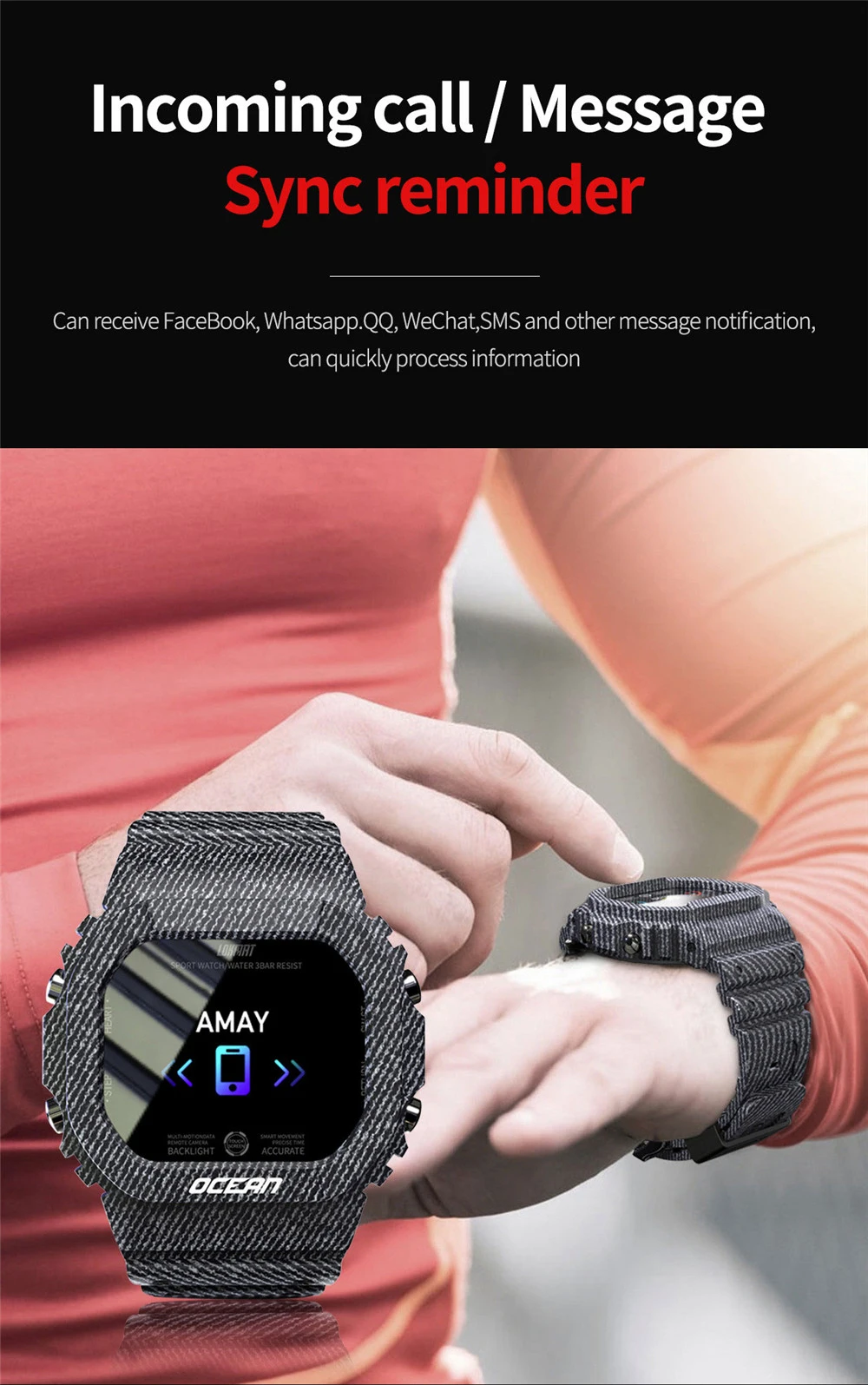 Технические характеристики:Цвет: черный/красный/Камуфляж (опционально)Материал: ТПУ + нержавеющая сталь 316L + пластикРазмер циферблата: 50*40*16 мм/1,97*1,57 * 0.63inРазмер ремешка: 22*220 мм/0,87 * 8.66in (Д * Ш)Вес изделия: 47,3/1,67 унцийРазмер упаковки: 9,3*9,3*8,5 см/3,66*3,66 * 3.35inВес упаковки: 164 г/5,78 унций