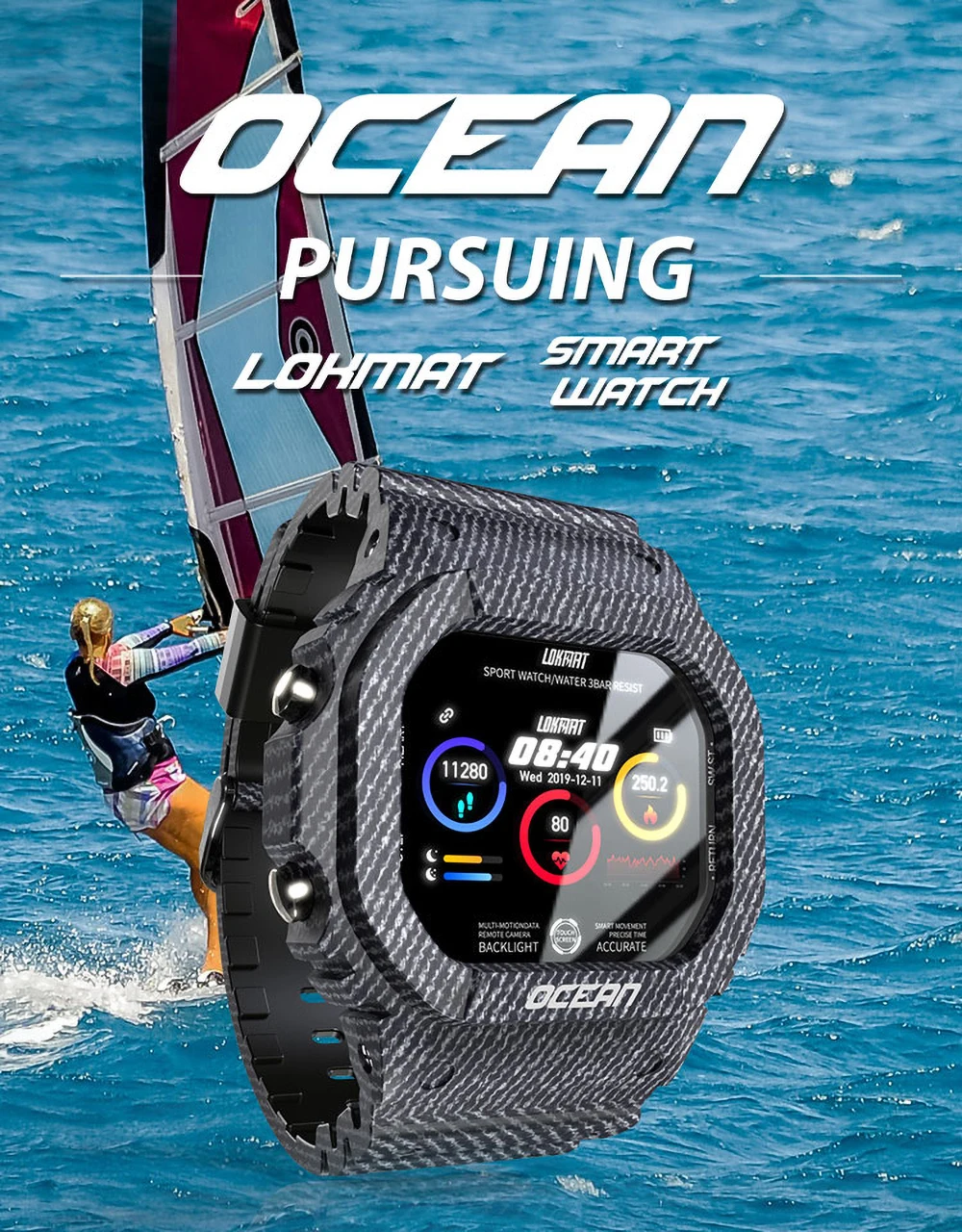 Смарт-часы LOKMAT Ocean мужские, фитнес-трекер, артериальное давление, водозащита IP68, дисплей 1,14 дюйма