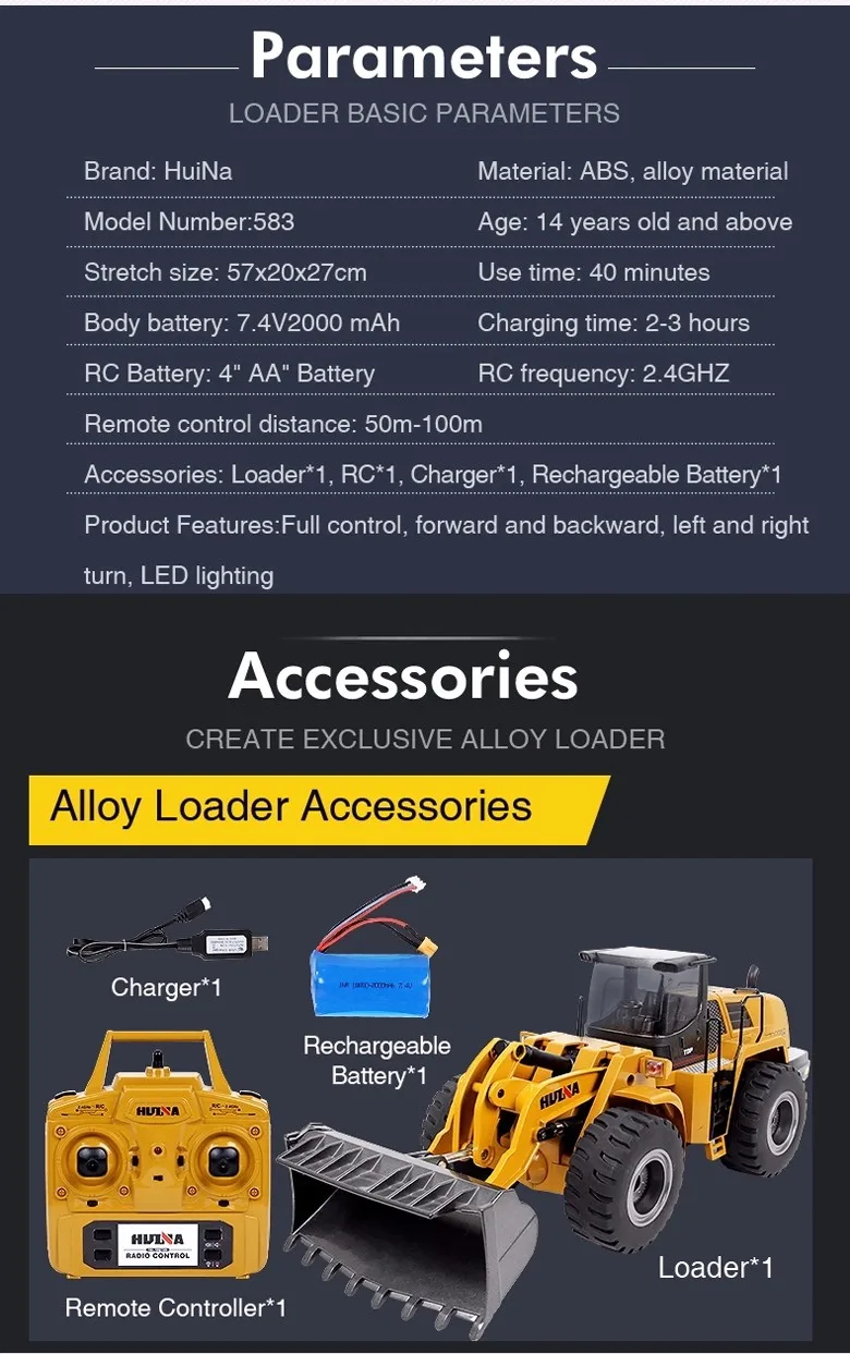 Масштаб 114, HUINA, Радиоуправляемый погрузчик большого размера, гр...