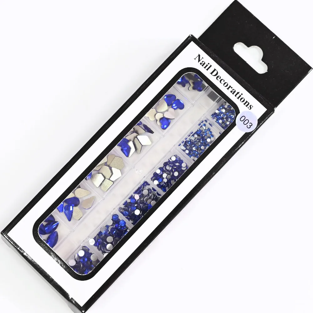 Стразы для ногтей 3D 12 разных размеров, Блестящие кристаллы 3D с плоской задней стороной, 1 коробка