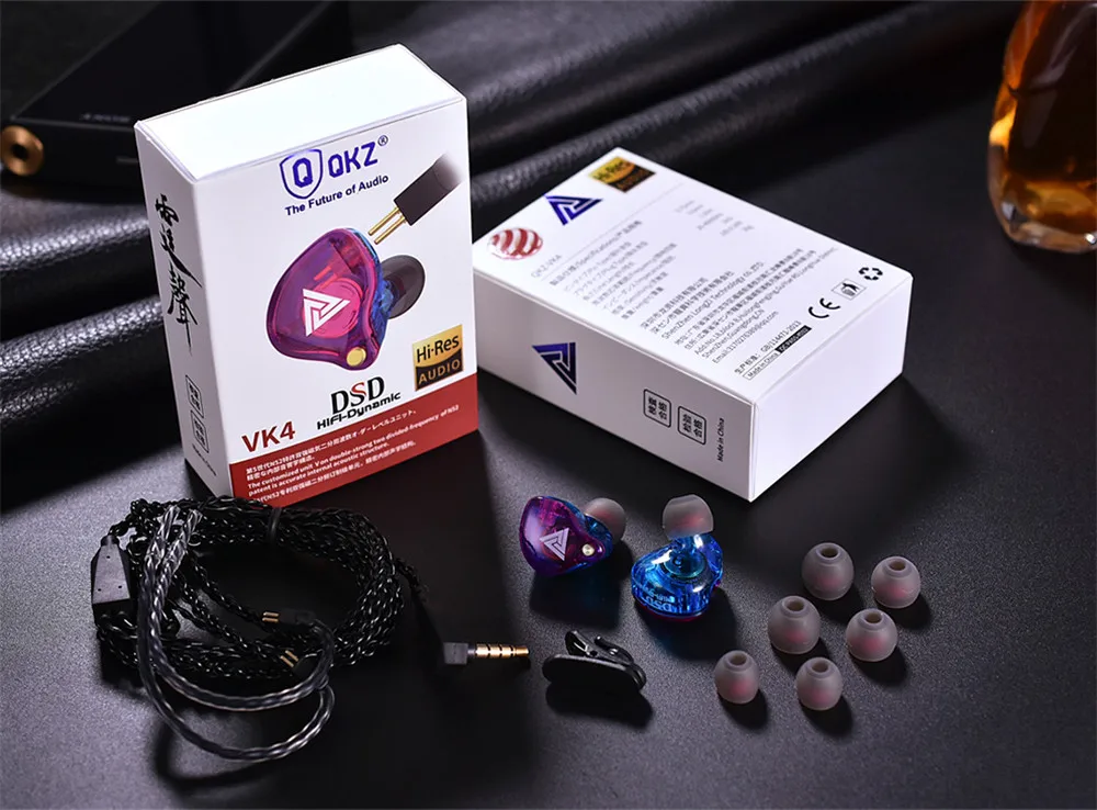 Наушники QKZ VK4 с усиленными басами, гарнитура, Hi-Fi наушники с железным управлением, музыкальный Bluetooth-кабель, наушники-вкладыши с шумоподавлением