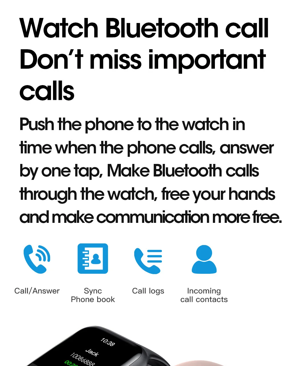 Основные характеристики: загрузка циферблатов, Разделенный экран, блокировка контактов, вызов Bluetooth, частота сердечных сокращений, шагомер, несколько видов спорта, уведомленияС двумя пуговицами + Беспроводной зарядное устройство + 44 мм серии 7 + 1,75 дюймов Разделение Экран 320*385 пикселей + поворот на пуговицах + блокировки + защита паролем + IP68 Водонепроницаемый + Bluetooth позвоните по номеру + 230 мАчПараметр:Платформа: Huntersun HS6621; Основная частота: 128 МГц; ОЗУ: 256кб; ПЗУ: 8 Мб + 64 МбСтандарт качества: GB4943.1-2011; ГБ/T22450.1-2008Чехол: вакуумное покрытие из сплаваРемешок: оригинальный 44 ммЗарядное устройство: беспроводное зарядное устройствоЦвет: черный, серебристый, синий, розовое золотоДисплей: 1,75 дюймов TFT экран, 320*385 пикселейСенсорная панель: несколько касанийУведомления: звонки, электронная почта, SMS, WhatsApp, Wechat и т. Д.Частота сердечных сокращений: автоматический 24H мониторШагомер: Ежедневный подсчет шагов, подсчет калорийМонитор сна: объективная и научная количественная оценка для записи и анализа состояния сна, каждую ночь с 9 до следующего дня автоматически включаетсяBluetooth:BT 3,0 + 5,0Батарея: 230 мАч литий-ионный полимерный аккумулятор, 150 минут для полной зарядкиВибрация: Поддержка