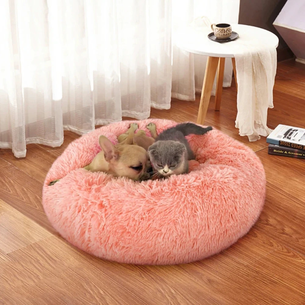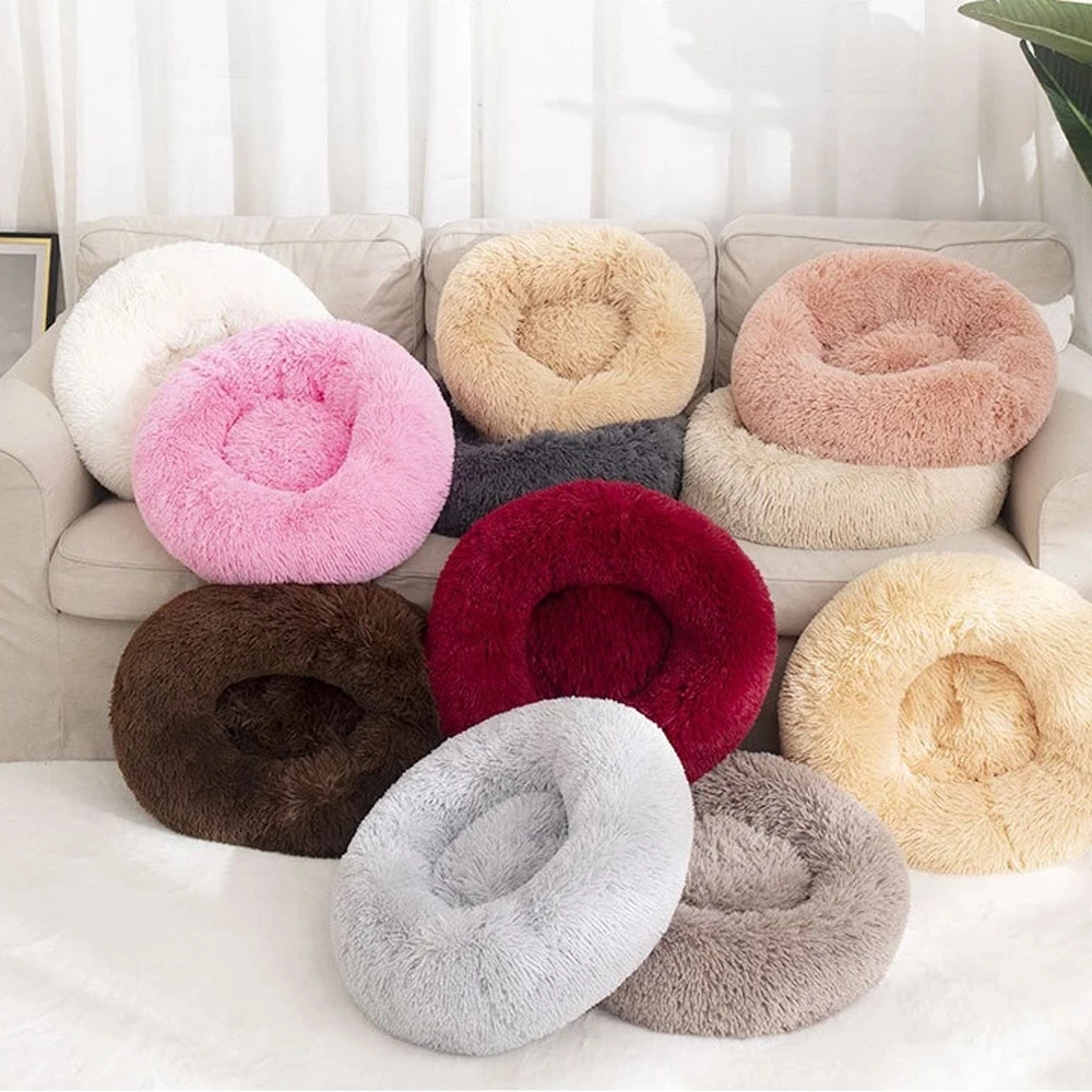 Длинная плюшевая кровать для собаки, большая кровать для собаки, круглая подушка, кровать для питомца, Конура для питомца, супер мягкая, пушистая, удобная для дома для кошки и собаки