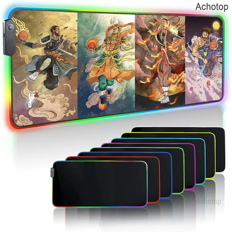 Большой коврик для мыши в китайском стиле с аниме геймером, XXL, компьютерный коврик для мыши, RGB игровой коврик для мыши, ПК, настольный игровой коврик, офисный коврик с подсветкой