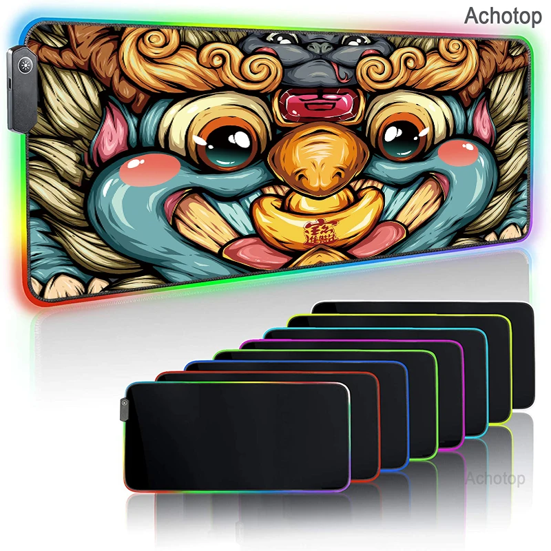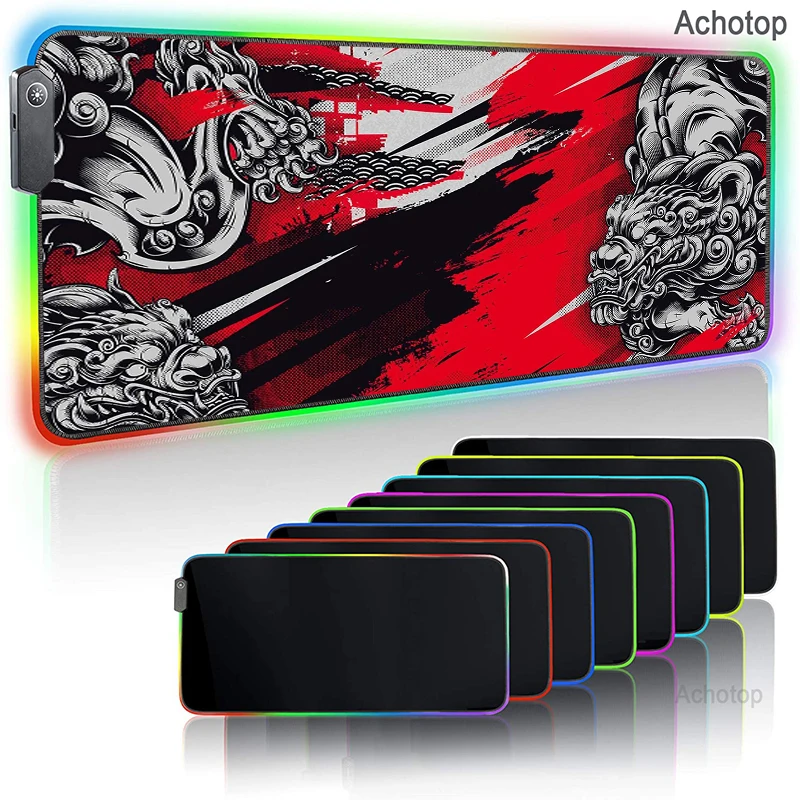 Большой игровой коврик для мыши в китайском стиле с аниме, размер XXL, компьютерный коврик для мыши, игровой коврик RGB, настольный игровой коврик для ПК, офисный коврик с подсветкой