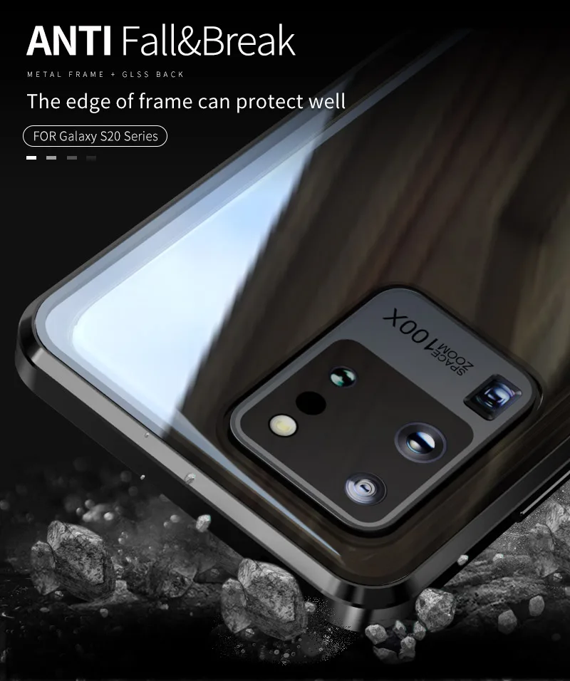 МеталлМагнитный чехол для Samsung Описание: 1, прозрачный чехол из закаленного стекла для всего тела, чтобы показать оригинальную красоту вашего телефона. 2. Изготовлен из металлической алюминиевой рамы и закаленного стекла, покрывающего переднюю и заднюю части телефона, обеспечивает защиту от царапин, пыли и отпечатков пальцев. 3, чехол для телефона использует технологию магнитной адсорбции, встроенный Магнит окружает стеклянный корпус, а металлическая рамка автоматически адсорбируется, когда она находится рядом с чехол для телефона. Легко устанавливается. 4, точные вырезы для динамиков, камеры, зарядных портов, аудио портов и кнопок. Гарантированное истинное ощущение вашего телефона и сохраняет его оригинальное ощущение руки. 5, удобный, легкий, гладкий дизайн, который защищает без добавления большого объема; Поддерживает беспроводную зарядку и не влияет на передачу сигнала.