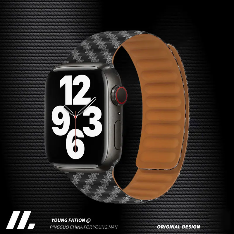 Ремешок магнитный для Apple watch band, браслет из углеродного воло...