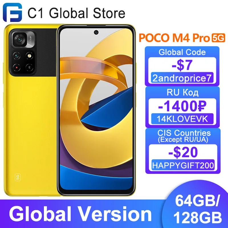 Глобальная версия POCO M4 Pro 5G 4 Гб + 64 Гб/6 ГБ + 128 ГБ с оригинальным зарядным устройством ЕС!