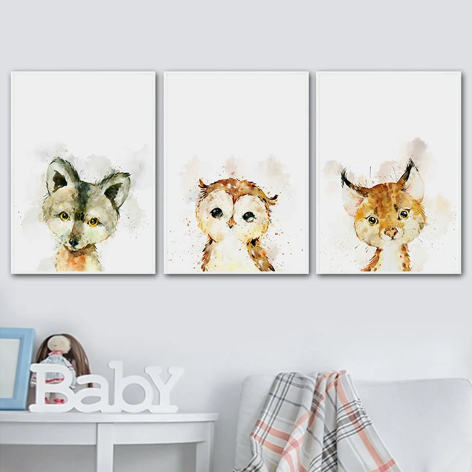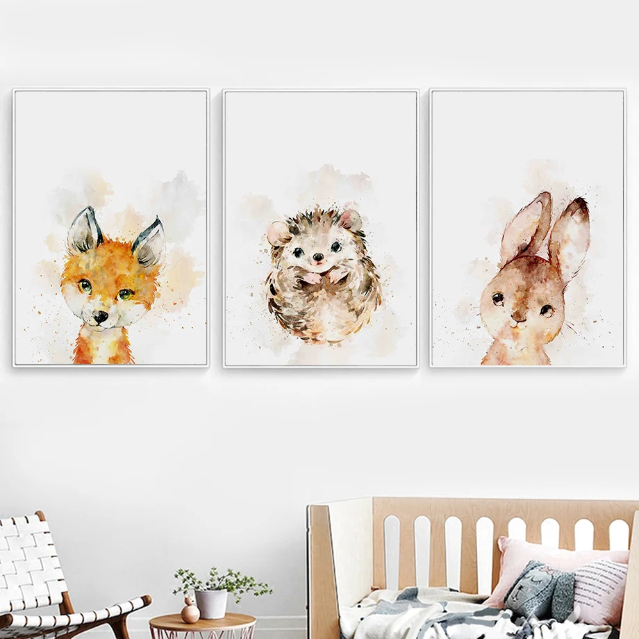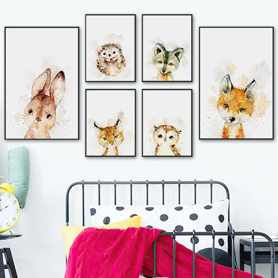 Картина на холсте с рисунком кролика, ежика, рыси, волка, совы, лисы, настенные картины с принтом в скандинавском стиле для детской комнаты, украшение для дома
