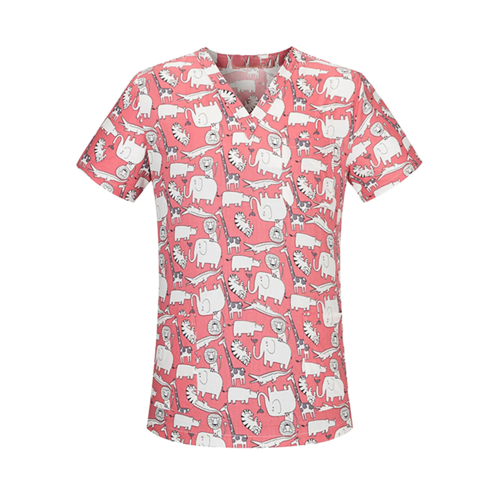 Женская униформа для кормления, топ с коротким рукавом и V-образным вырезом, рабочая одежда с мультяшным принтом, 2022 карманов, униформа для клиники, топы для кормления