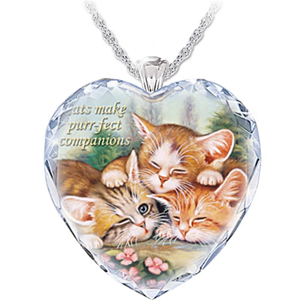 Женское ожерелье с изображением котенка из хрустального стекла креа...