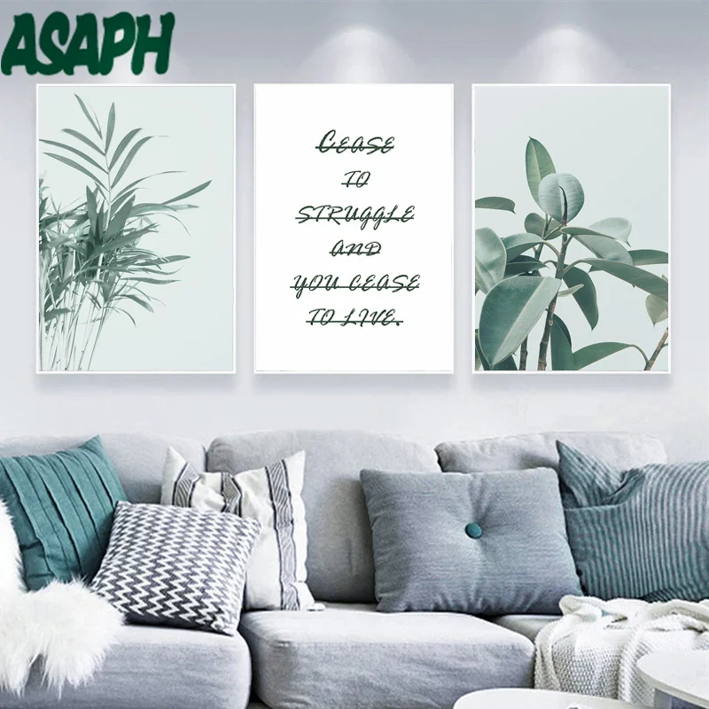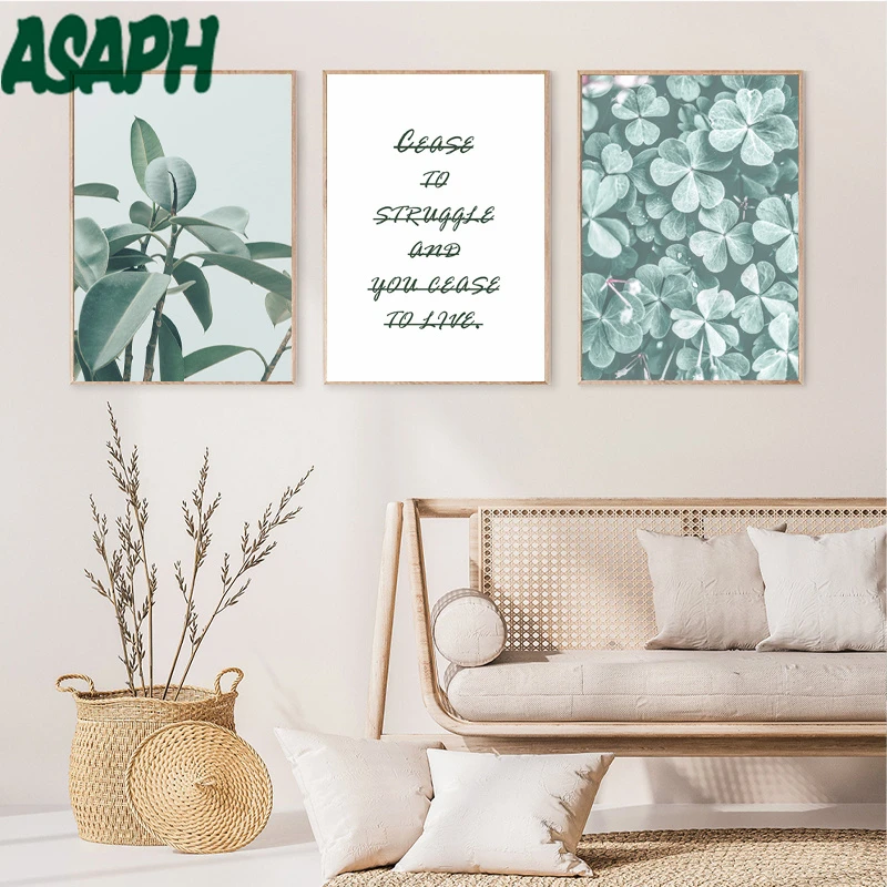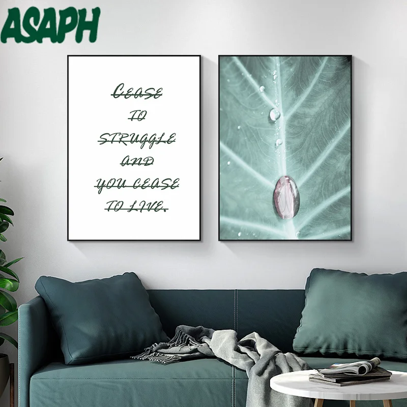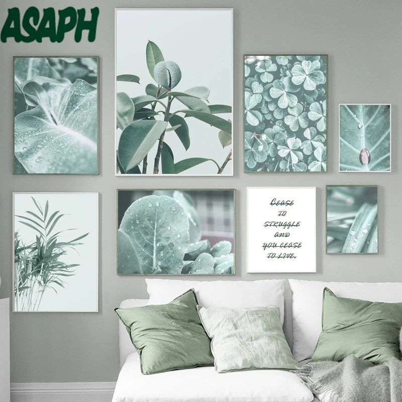 Природа зеленые растения листья росы утро лист Deatail цитаты на стену Картина на холсте современный постер для гостиной домашний декор