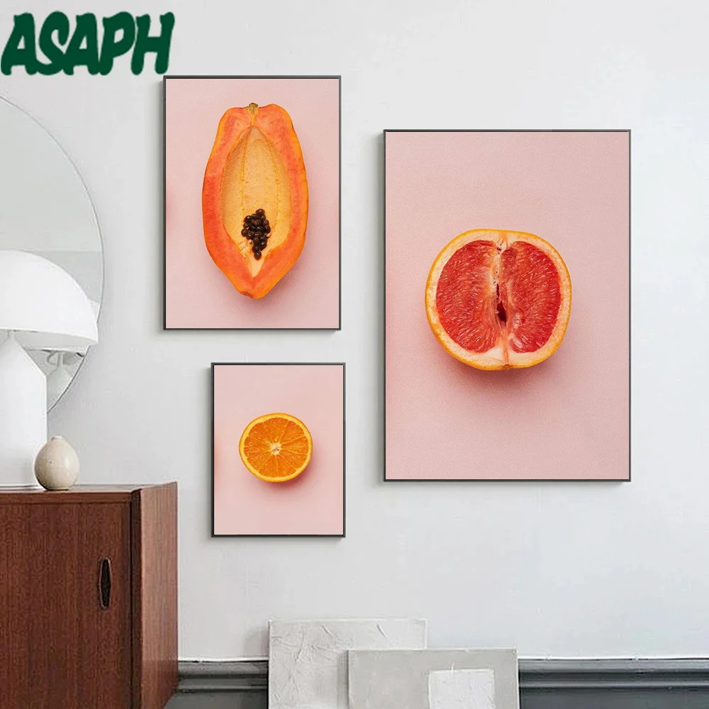 Fuits оранжевый грейпфрут Pawpaw розовый фон плакаты настенная живопись холст...