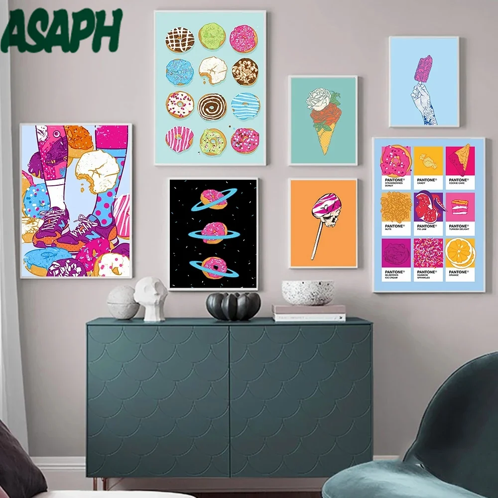 Яркий цвет десерт пончики мороженое вкусная еда Холст Картина современное настенное искусство...
